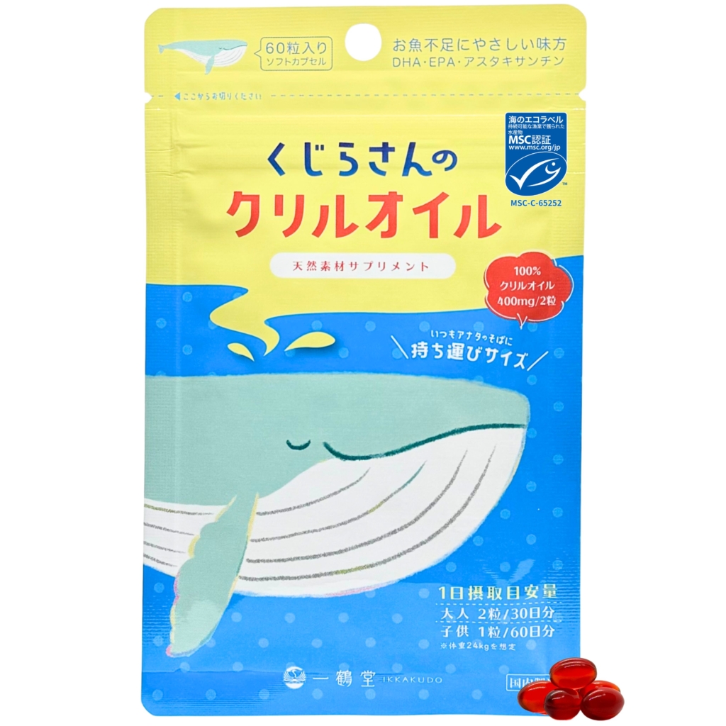くじらさんのクリルオイルは、他のクリルオイル製品とは明確に違う事があります。その最大の違いは、くじらさんのクリルオイルには人の意識を高めるストーリーや思いが込められていることです。もしあなたがレストランで食事をする時、ただ出された料理と、この料理が生まれたストーリーを説明されてから出された料理では、後者の方が美味しく感じるはずです。クリルオイルも同様に、ただ飲むだけでなく、南極海のクジラを想像してみて下さい。世界最大のシロナガスクジラがクリルを食べ、美しき生態系が維持されているサイクルに自身が含まれている事を感じることで、クリルオイルの効果は最大限に膨れ上がるのです。ぜひ、絵本や開発秘話を読んだり、クイズやゲームに挑戦してストーリーを体験してみて下さい。